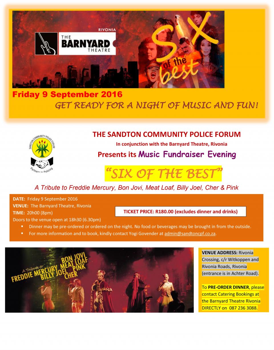 Sandton CPF Fundraiser: "Six of the Best" at The Barnyard theatre, Rivonia. 9th September 2016