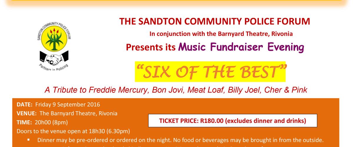 Sandton CPF Fundraiser: "Six of the Best" at The Barnyard theatre, Rivonia. 9th September 2016