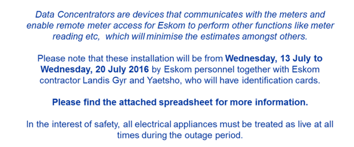 Planned Electricity Interruption Installation of Data Concentrators - Buccleuch